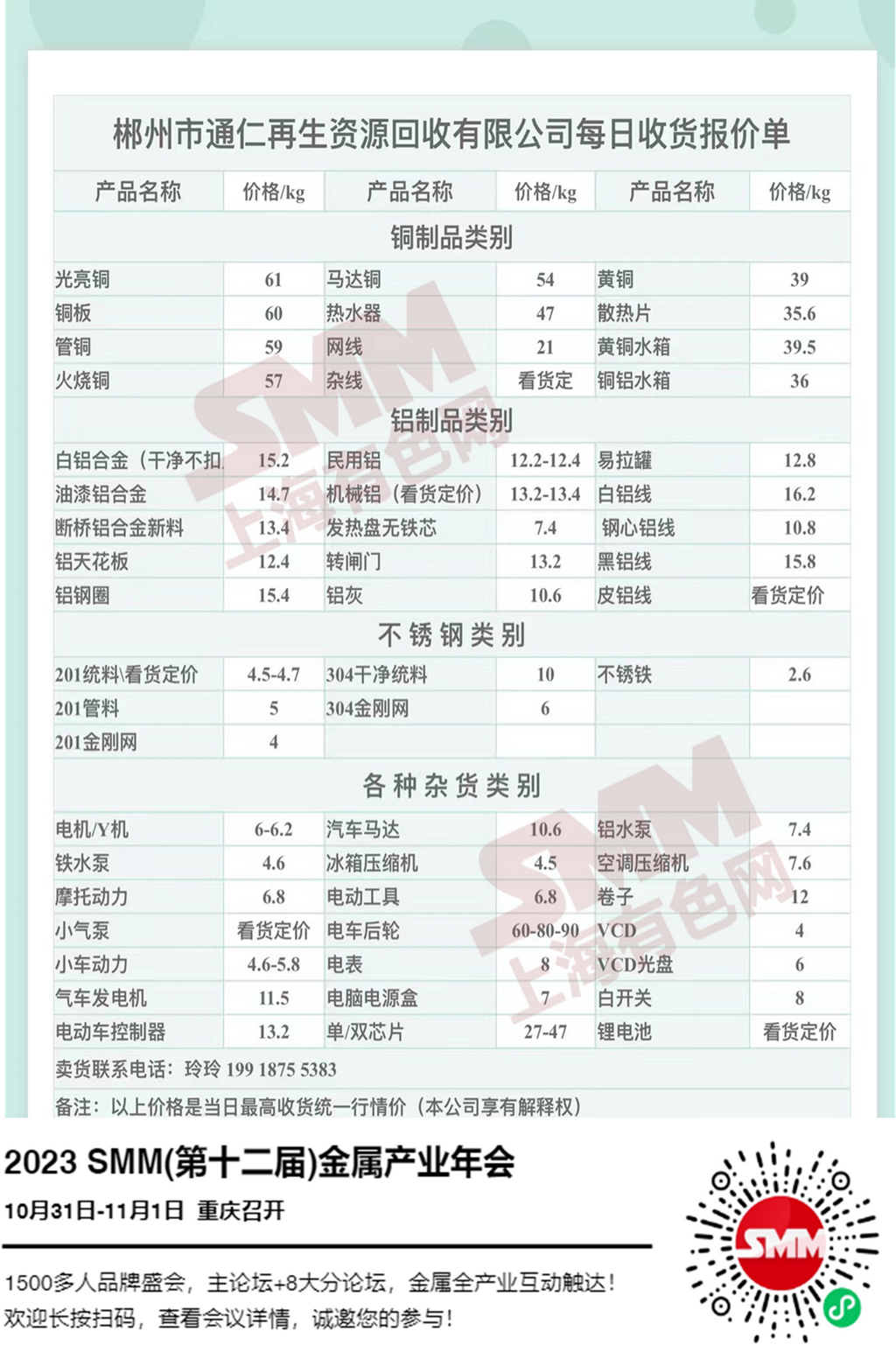 今日郴州市通仁再生资源回收有限公司 废金属收购报价已更新,有货的朋友欢迎联系我们!