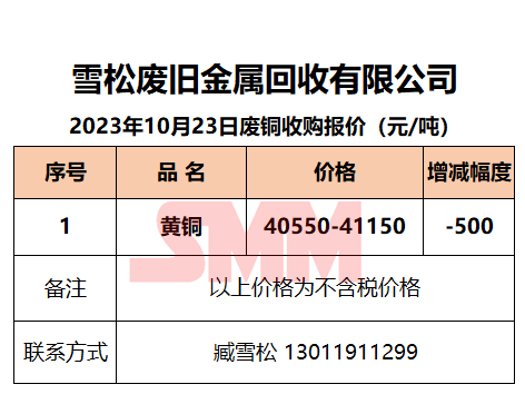 10月23日雪松废旧 废铜收购报价