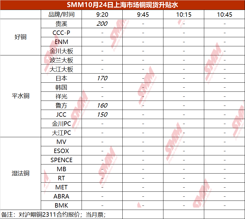 10月24日上海市场铜现货升贴水(第一时段)【SMM价格】