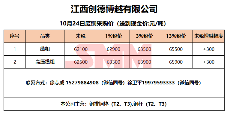 今日江西创德博越,废铜采购报价已更新,有货的朋友欢迎联系我们!