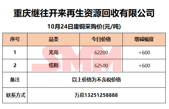 10月24日重庆继往开来 废铜采购报价