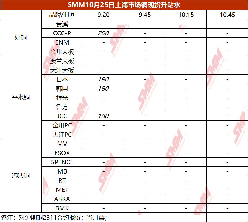 10月25日上海市场铜现货升贴水(第一时段)【SMM价格】