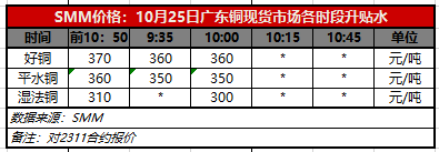 10月24日广东铜现货市场各时段升贴水(第二时段10:00)【SMM价格】