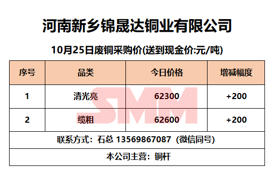 今日河南锦晟达,废铜采购报价已更新,有货的朋友欢迎联系我们!