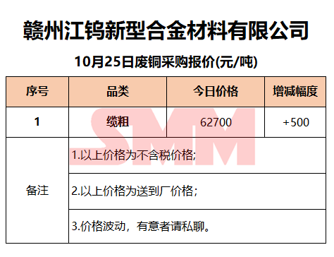 今日赣州江钨,废铜采购报价已更新,有货的朋友欢迎联系我们!