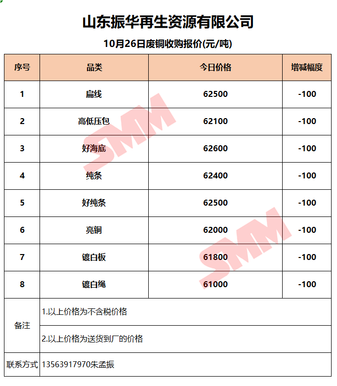 今日山东振华,废铜收购报价已更新,有货的朋友欢迎联系我们!