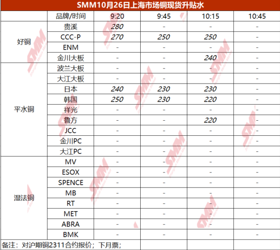 10月26日上海市场铜现货升贴水(第三时段)【SMM价格】