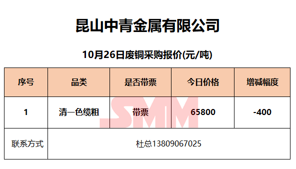 10月26日昆山中青 废铜采购报价