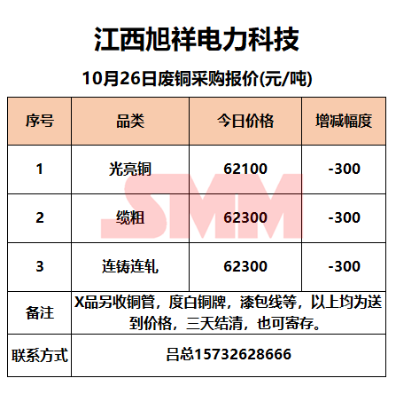 10月26日江西旭祥 废铜采购报价