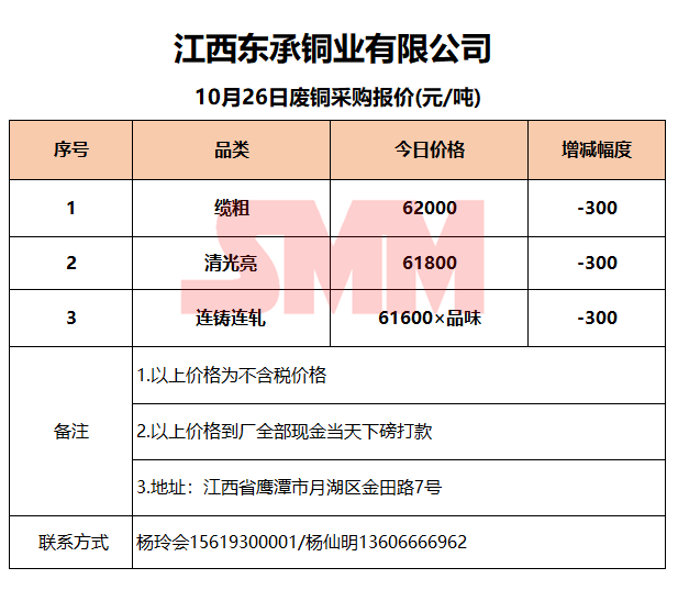 10月26日江西东承 废铜采购报价