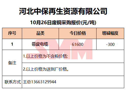 10月26日河北中保 废铜采购报价