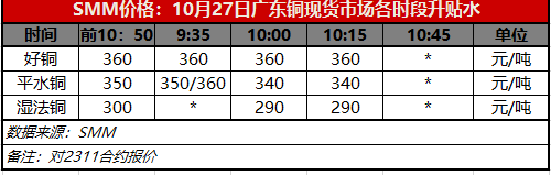 10月27日广东铜现货市场各时段升贴水(第三时段10:15)【SMM价格】