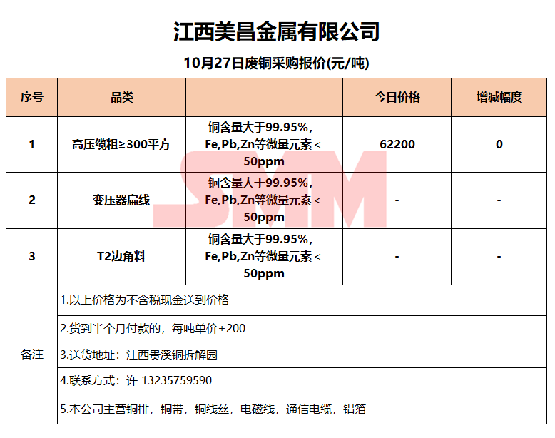 今日江西美昌,废铜采购报价已更新,有货的朋友欢迎联系我们!