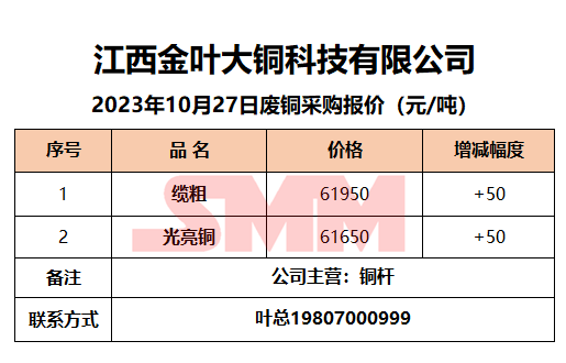今日江西金叶大铜,废铜采购报价已更新,有货的朋友欢迎联系我们!