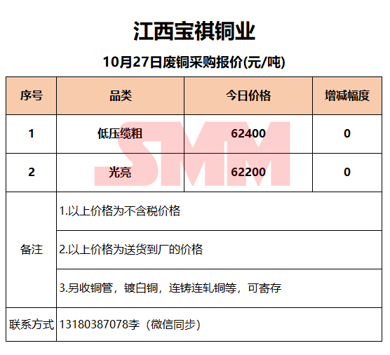 今日江西宝祺铜业 废铜采购报价已更新,有货的朋友欢迎联系我们!