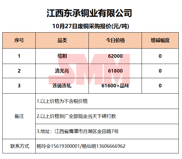 10月27日江西东承 废铜采购报价