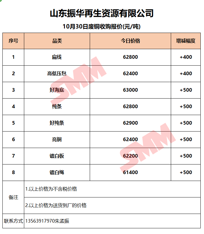 10月30日山东振华 废铜收购报价