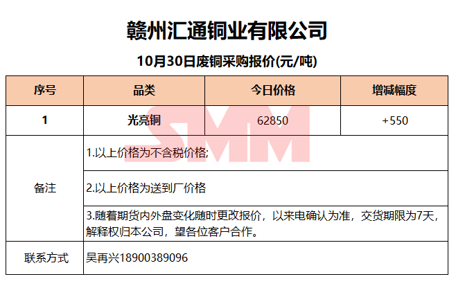 10月30日赣州汇通 废铜采购报价