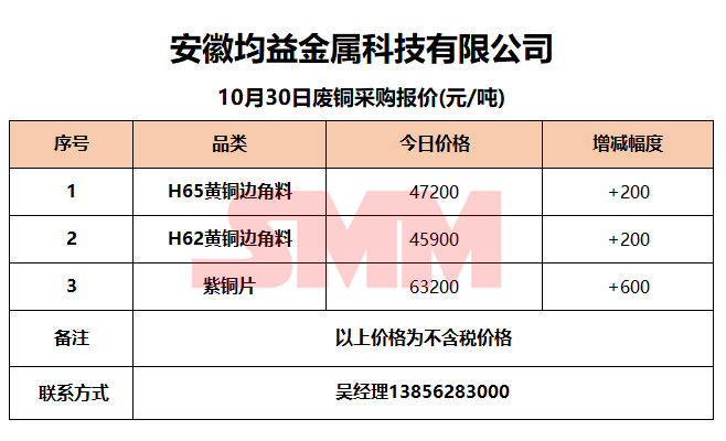 10月30日安徽均益 废铜采购报价