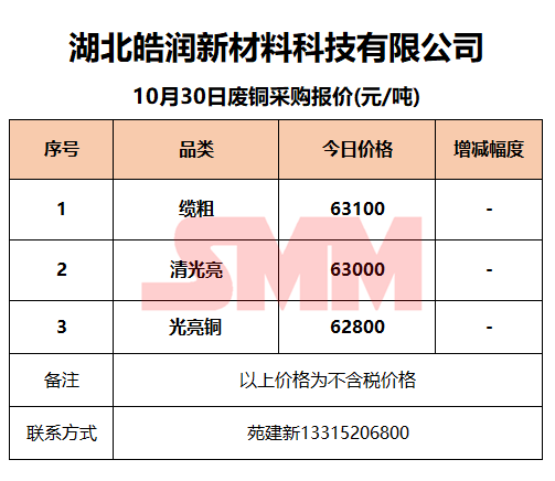 10月30日湖北皓润 废铜采购报价