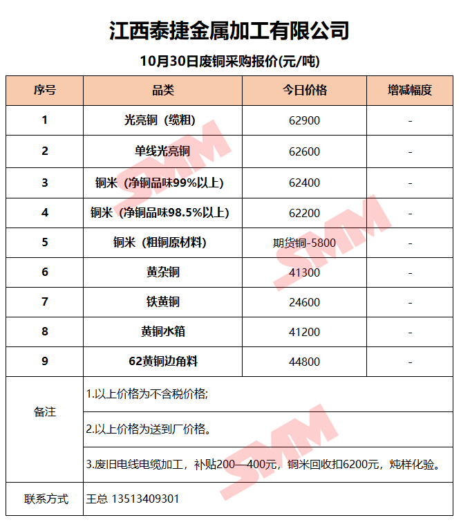 今日江西泰捷,废铜采购报价已更新,有货的朋友欢迎联系我们!