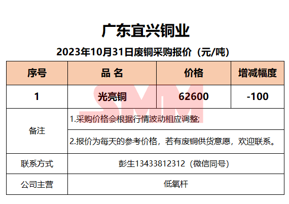 10月31日广东宜兴 废铜采购报价