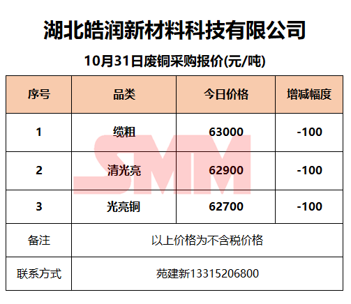 10月31日湖北皓润 废铜采购报价