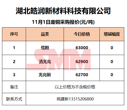 11月1日湖北皓润 废铜采购报价