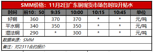 11月2日广东铜现货市场各时段升贴水(第二时段10:00)【SMM价格】