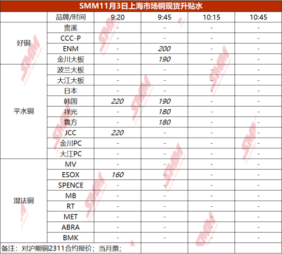 11月3日上海市场铜现货升贴水(第二时段)【SMM价格】