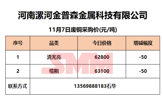 11月7日河南金普森 废铜采购报价