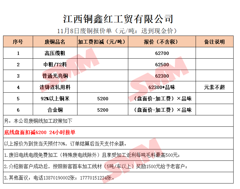 11月8日江西铜鑫红 废铜采购报价