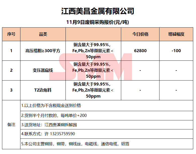 今日江西美昌,废铜采购报价已更新,有货的朋友欢迎联系我们!