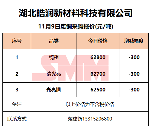 11月9日湖北皓润 废铜采购报价