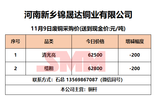 今日河南锦晟达,废铜采购报价已更新,有货的朋友欢迎联系我们!