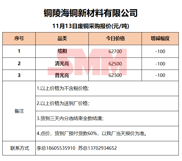今日铜陵海铜,废铜采购报价已更新,有货的朋友欢迎联系我们!