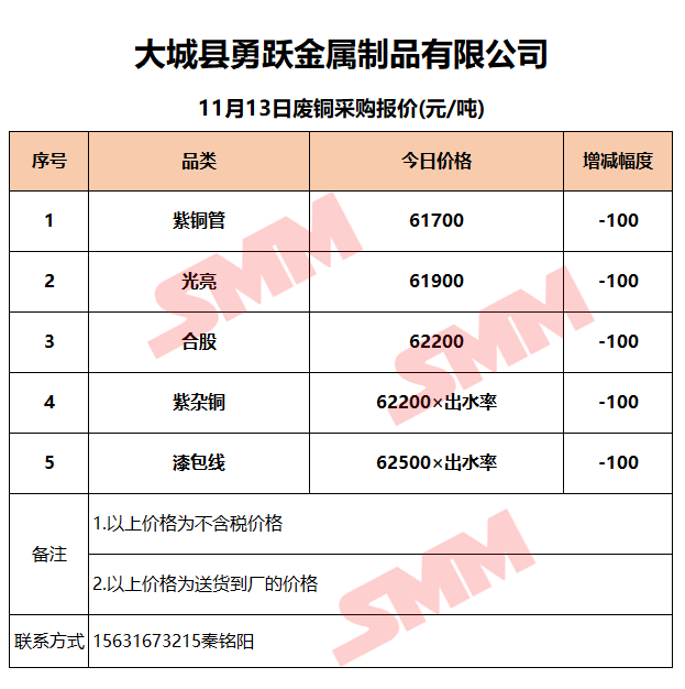 今日大城勇跃,废铜采购报价已更新,有货的朋友欢迎联系我们!