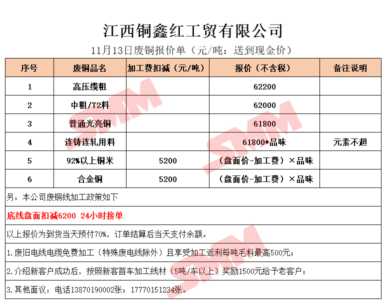 11月13日江西铜鑫红 废铜采购报价