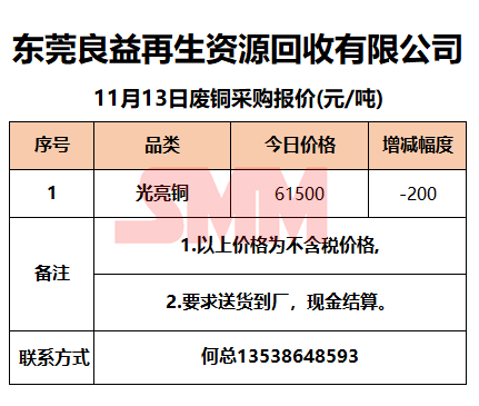 11月13日东莞良益 废铜采购报价