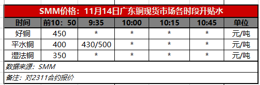 11月14日广东铜现货市场各时段升贴水(第一时段9:30)【SMM价格】