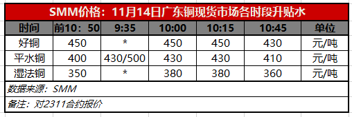 11月14日广东铜现货市场各时段升贴水(第四时段10:45)【SMM价格】