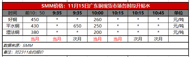 11月15日广东铜现货市场各时段升贴水(第二时段10:00)【SMM价格】