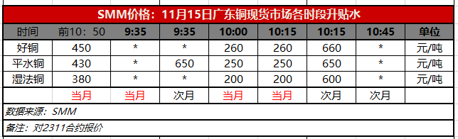11月15日广东铜现货市场各时段升贴水(第三时段10:15)【SMM价格】