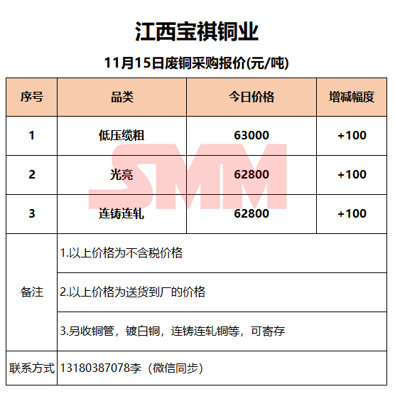 今日江西宝祺铜业 废铜采购报价已更新,有货的朋友欢迎联系我们!