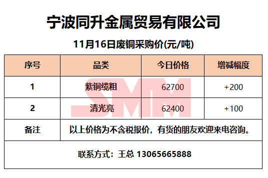 今日宁波同升金属,废铜采购报价已更新,有货的朋友欢迎联系我们!