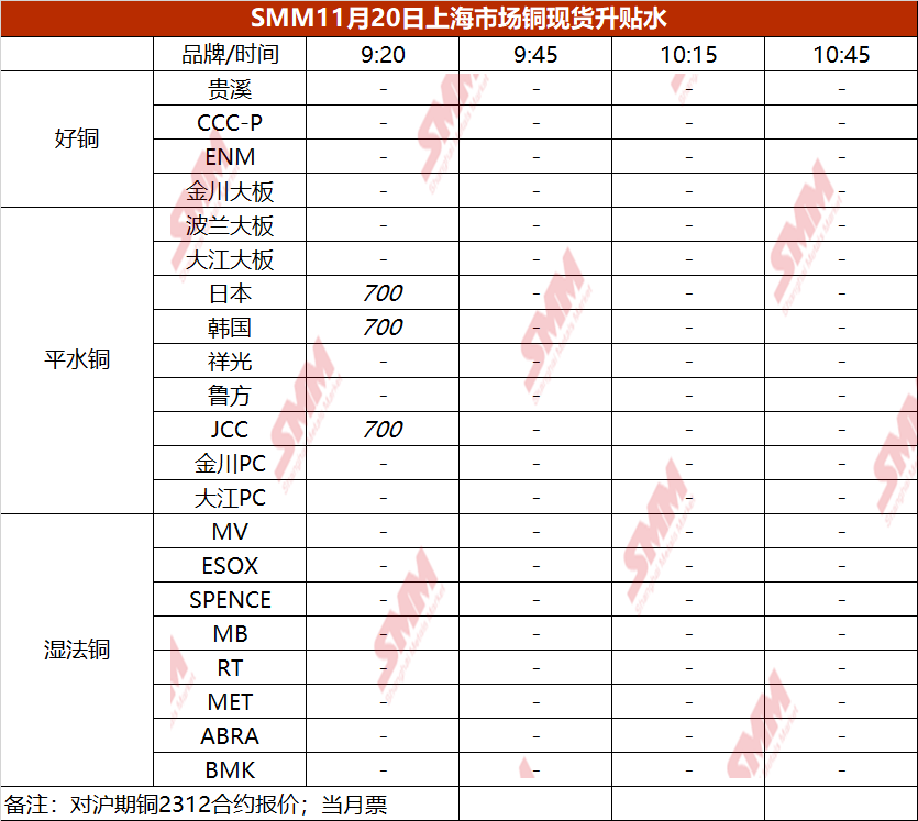 11月20日上海市场铜现货升贴水(第一时段)【SMM价格】