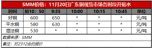 11月20日广东铜现货市场各时段升贴水(第一时段9:30)【SMM价格】