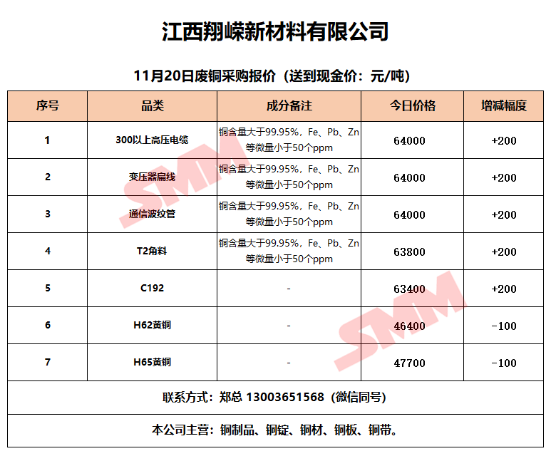 今日江西翔嵘新材料,废铜采购报价已更新,有货的朋友欢迎联系我们!