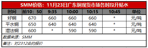 11月23日广东铜现货市场各时段升贴水(第三时段10:15)【SMM价格】