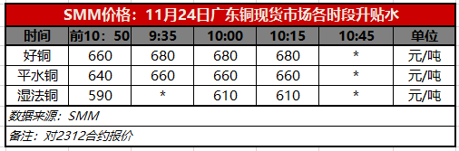 11月24日广东铜现货市场各时段升贴水(第三时段10:15)【SMM价格】